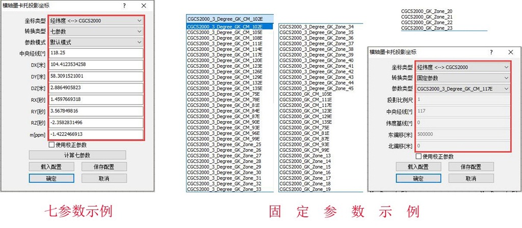 ①平面坐標帶有分帶號(3°分帶和6°分帶的帶號),某坐標值中有8位數(shù)(前2位數(shù)為帶號),則根據(jù)帶號選擇參數(shù)。