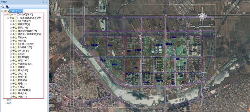 完成后,在奧維PC端的[收藏夾]中會新建一個【CAD工作空間】文件夾保存發(fā)送過來的數(shù)據(jù),并正常顯示在地圖上。