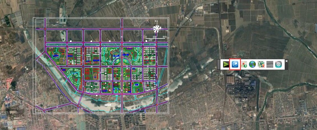 設(shè)置關(guān)聯(lián)點:即建立CAD文件某點的平面坐標與經(jīng)緯度坐標的對應(yīng)關(guān)系。