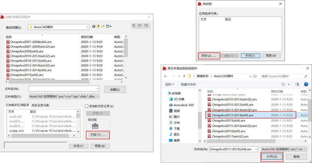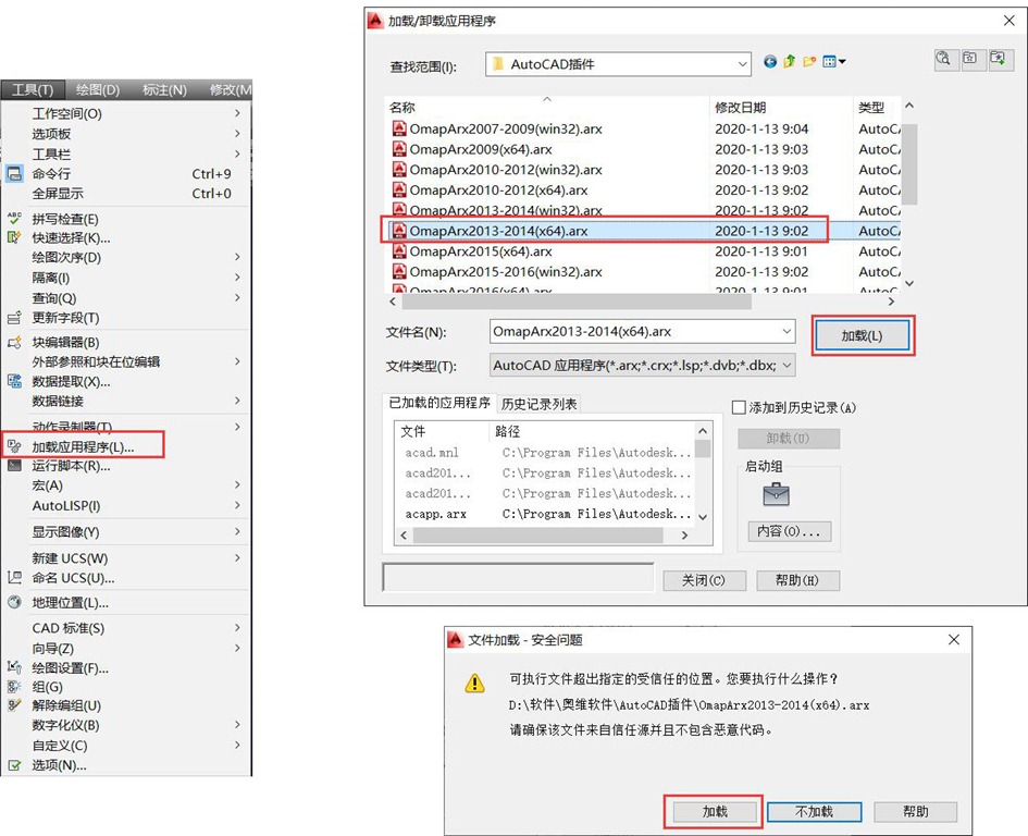 啟動AutoCAD,安裝相應(yīng)版本的OmapCAD插件,操作如下。