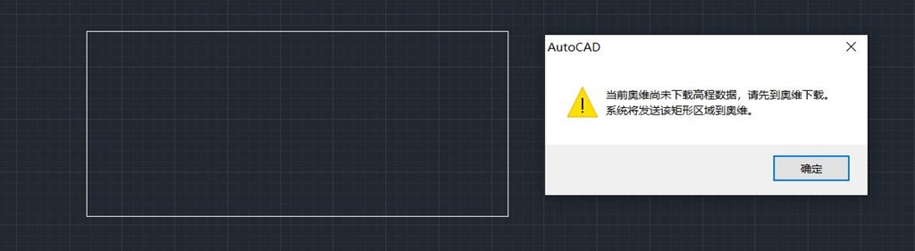 ☆說明:若用戶還未在奧維中下載該區(qū)域的高程數(shù)據(jù),會彈出相關(guān)提示,如下圖所示。您先前往奧維疊加高程,再返回到CAD中下載高程,即可。