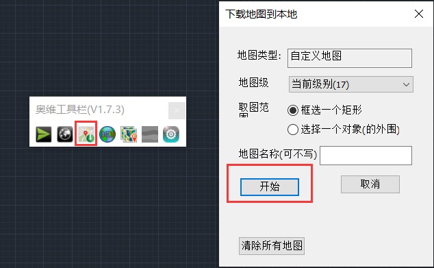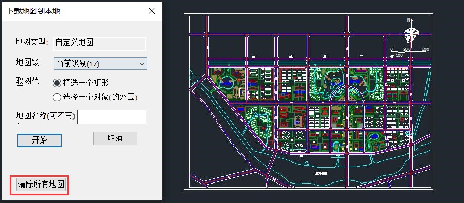 在[下載地圖到本地]窗口,點擊【清除所有地圖】,并關(guān)閉[下載地圖到本地]窗口,可將加載的地圖清除。