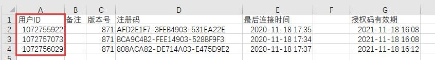 在管理控制臺的[批量離線授權管理]窗口,將離線機器的用戶ID導出到表格。