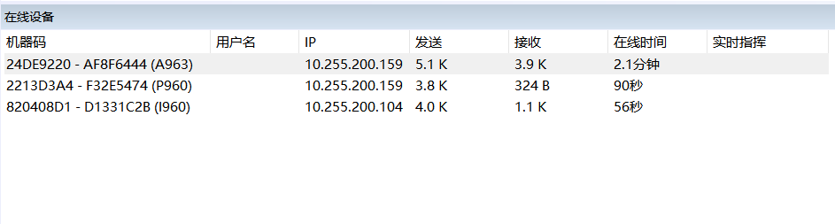 客戶端匿名登錄企業(yè)服務器后,返回管理控制臺,在管理控制臺[在線設備]窗口中顯示已經匿名登錄企業(yè)服務器的機器。