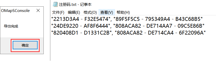 導出完成后,需要授權的機器信息保存在TXT文件中。