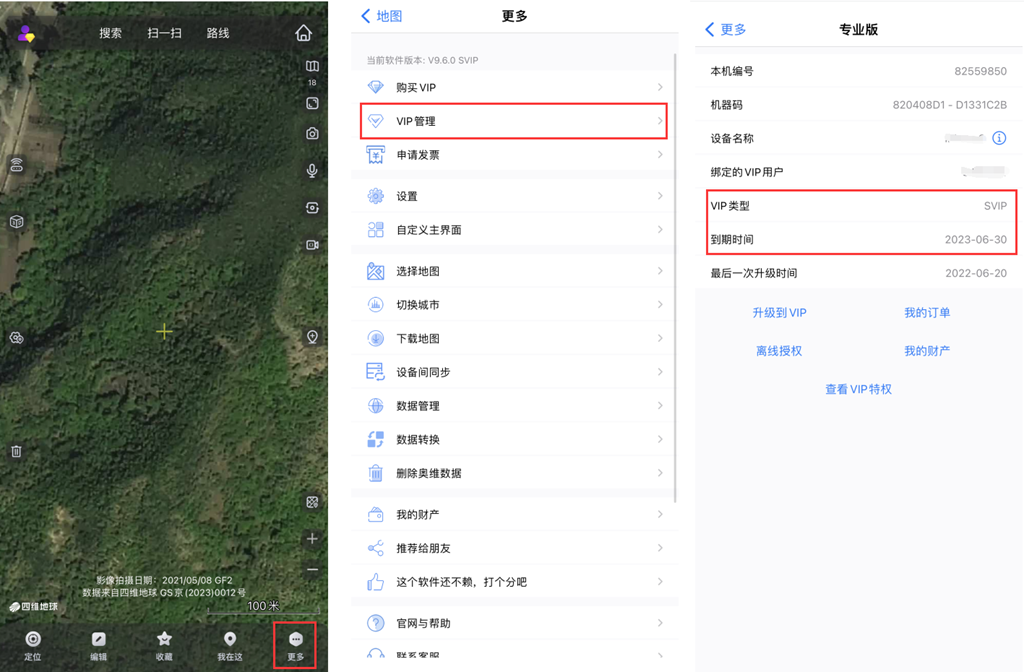在離線手機的奧維互動地圖中,您可以點擊【更多】→【VIP管理】查看VIP等級和服務到期時間。