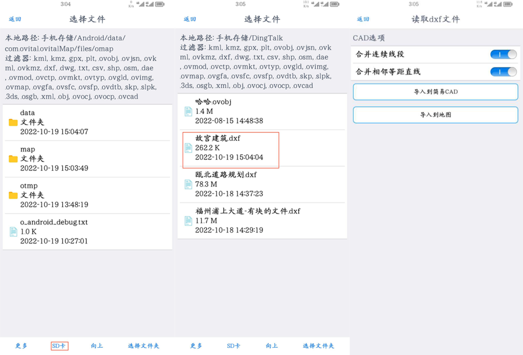 安卓操作系統(tǒng)用戶仍然可通過(guò)QQ、微信傳輸數(shù)據(jù),然后從QQ、微信根目錄導(dǎo)入CAD文件;也可通過(guò)數(shù)據(jù)線將數(shù)據(jù)從電腦拷貝到奧維手機(jī)根目錄下或者使用奧維的點(diǎn)對(duì)點(diǎn)傳輸功能將CAD文件傳輸?shù)绞謾C(jī)上。