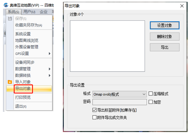 在奧維主界面上,點(diǎn)擊【收藏】→【菜單】→【導(dǎo)入導(dǎo)出】→【導(dǎo)出對(duì)象】。