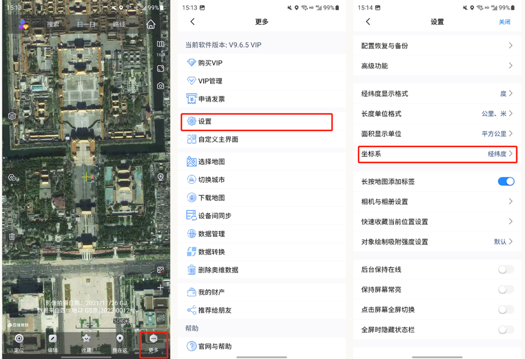 在奧維互動(dòng)地圖手機(jī)/平板客戶端中,點(diǎn)擊【更多】→【設(shè)置】→【坐標(biāo)系】,進(jìn)入[坐標(biāo)系]頁(yè)面,用戶可在此設(shè)置系統(tǒng)坐標(biāo)系。