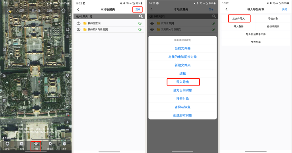 在奧維主界面上,點(diǎn)擊【收藏】→【菜單】→【導(dǎo)入導(dǎo)出】→【從文件導(dǎo)入】。