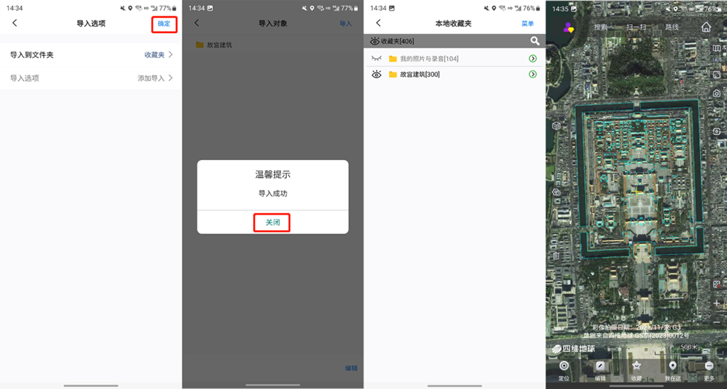 點(diǎn)擊【確定】,系統(tǒng)執(zhí)行導(dǎo)入文件;導(dǎo)入完成后,數(shù)據(jù)會(huì)保存在收藏夾中,顯示在地圖上。
