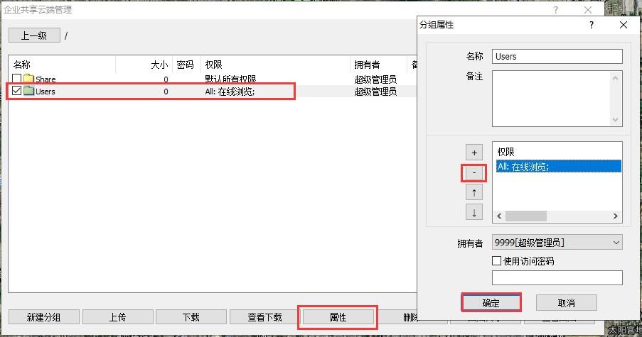 2、修改企業(yè)共享云端管理文件夾權(quán)限