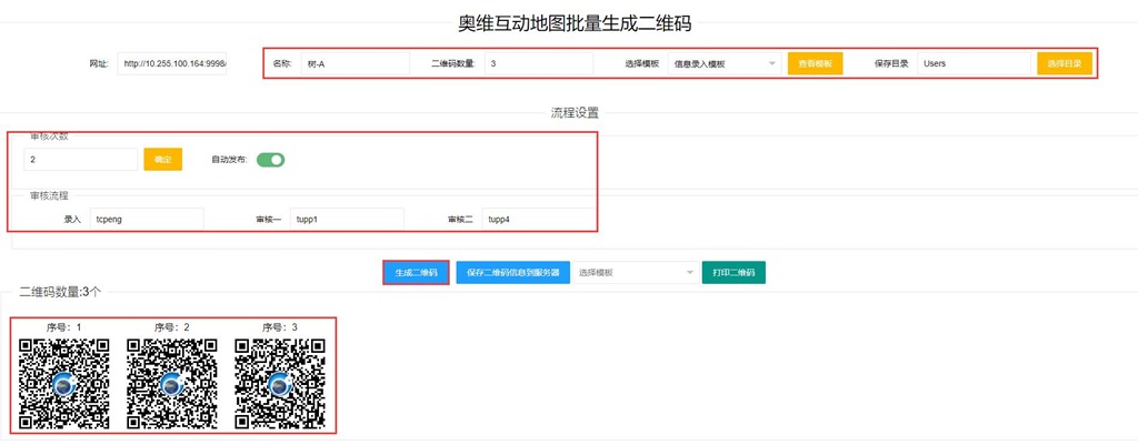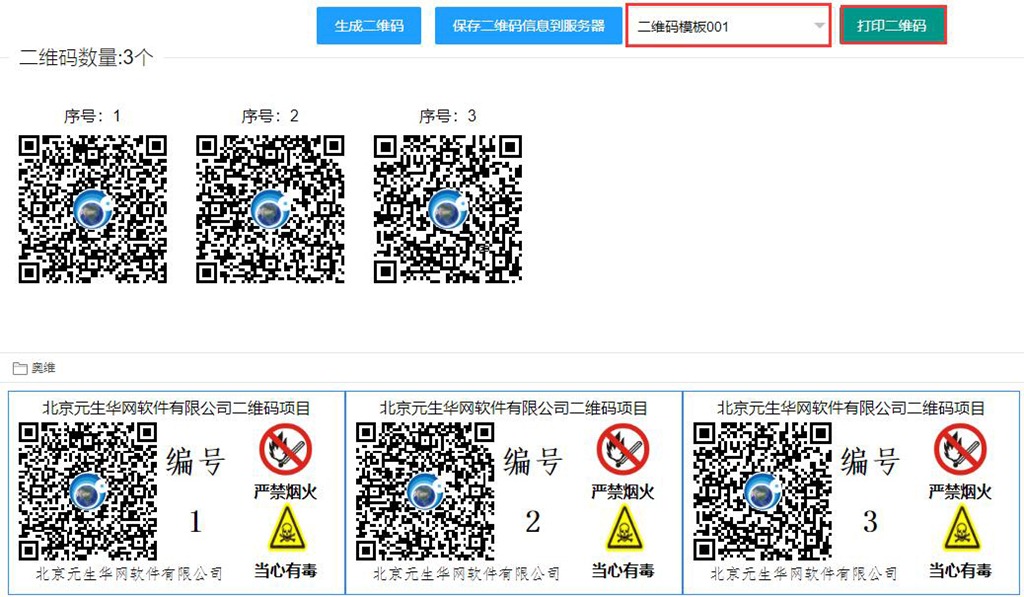 設(shè)置好上述信息后,點(diǎn)擊【生成二維碼】,系統(tǒng)會按用戶的設(shè)置批量生成二維碼;點(diǎn)擊【保存二維碼信息到服務(wù)器】,即可將二維碼上傳到企業(yè)服務(wù)器,保存在數(shù)據(jù)庫中。