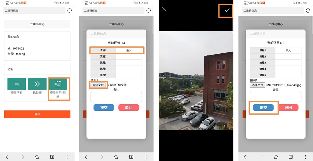 第三,使用手機(jī)瀏覽器掃一掃二維碼,查看前期錄入的信息,上傳文字、照片等新的信息。