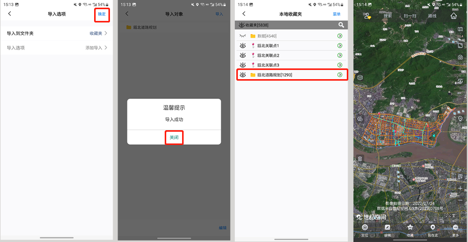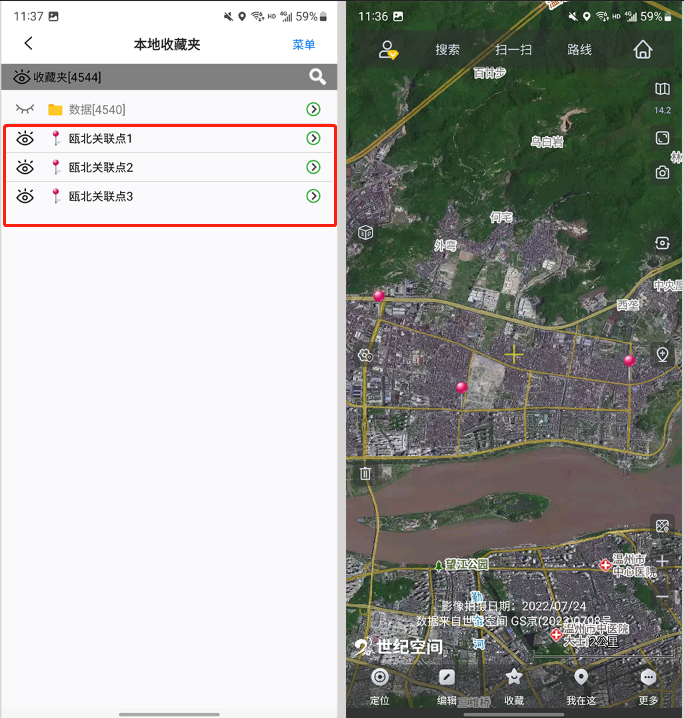 導入完成后,數(shù)據(jù)會顯示在地圖上,保存在收藏夾中。
