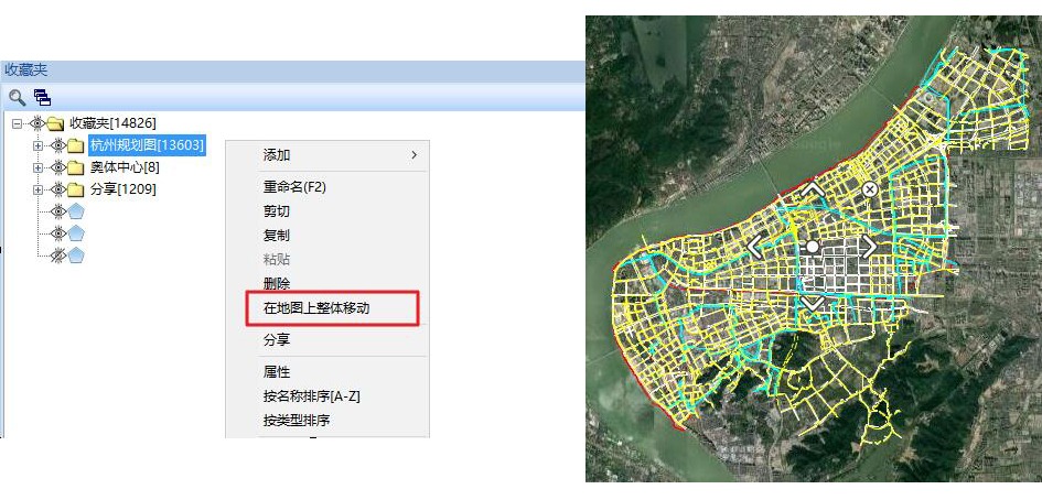 在收藏夾中選中所有數(shù)據(jù)(也可以選擇文件夾),點擊鼠標右鍵,點擊【在地圖上整體移動】,在地圖上會出現(xiàn)“上下左右”方向按鈕。