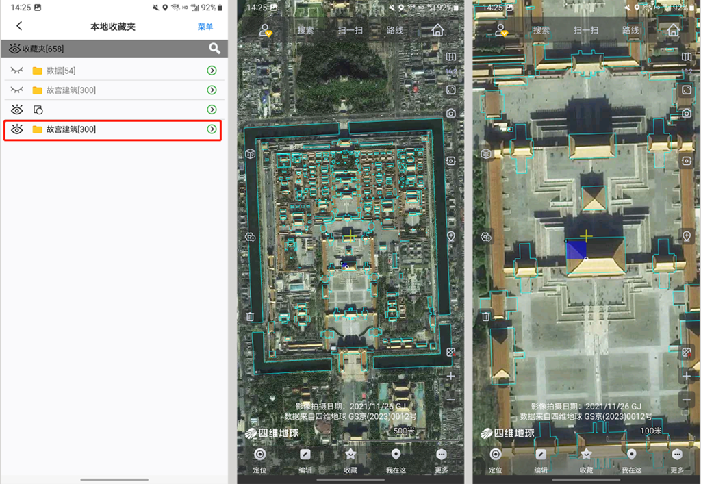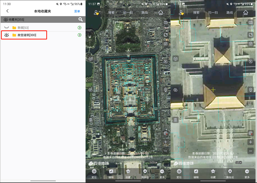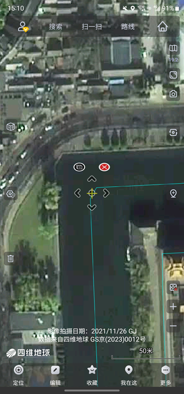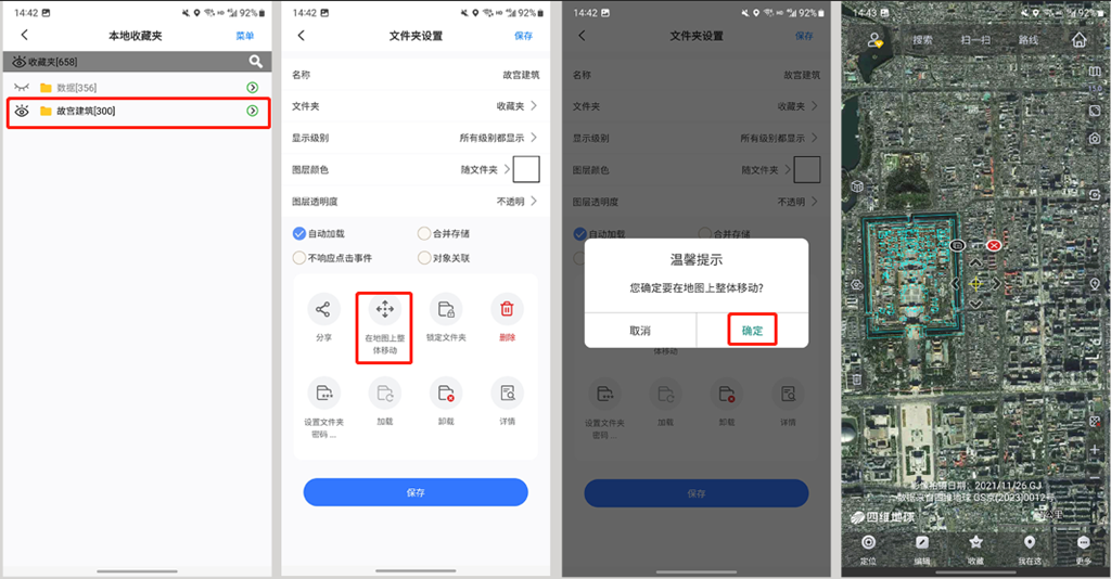 在收藏夾中點擊文件夾右側(cè)的圖片1按鈕,進入文件夾設置頁面,點擊【在地圖上整體移動】,提示“您確定要在地圖上整體移動?”,點擊確定,在地圖上會出現(xiàn)“上下左右”操作按鈕。