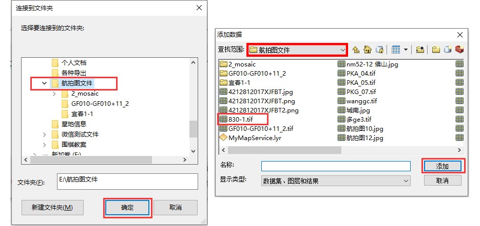 選擇存放地圖文件的文件夾,點(diǎn)擊【確定】。選擇需要發(fā)布的航拍圖(可批量選擇),點(diǎn)擊【添加】。