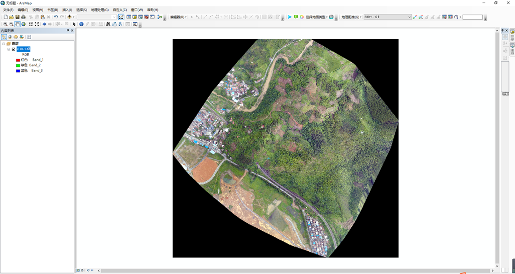 在ArcMap地圖顯示窗口中,即可顯示添加的航拍圖。