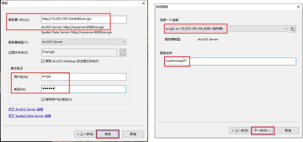 進(jìn)入[常規(guī)]窗口,設(shè)置服務(wù)器URL,服務(wù)器類(lèi)型、過(guò)渡文件夾保持默認(rèn),輸入用戶名、密碼,點(diǎn)擊【完成】,即可創(chuàng)建一個(gè)連接,并返回[發(fā)布服務(wù)]窗口。