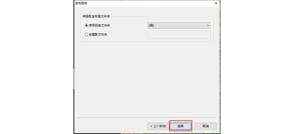 在[發(fā)布服務(wù)]窗口,選擇剛創(chuàng)建的連接,輸入服務(wù)名稱(chēng),點(diǎn)擊【下一步】。