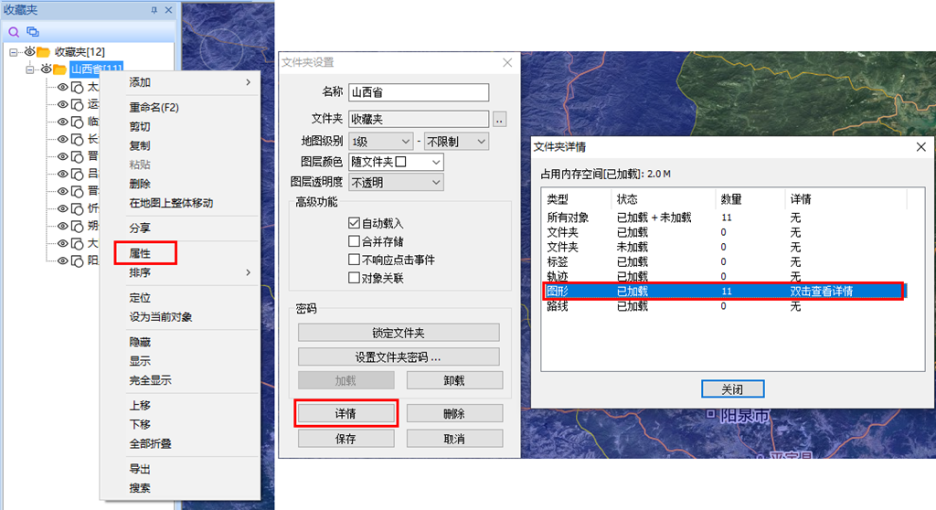 然后選中該文件夾,點擊鼠標右鍵→【屬性】→【詳情】,進入[文件夾詳情]界面;雙擊圖形條目,查看圖形詳情。