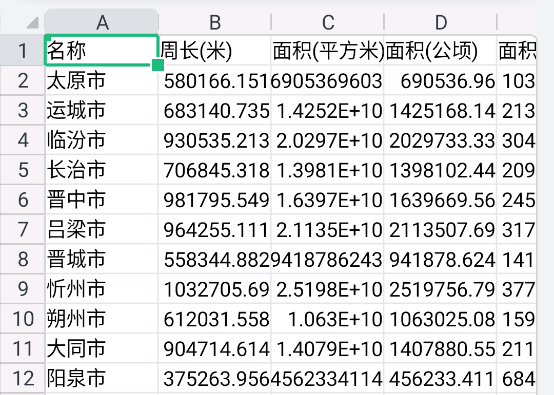 在奧維互動地圖中,您可以將圖形的周長、面積等導出到表格中。