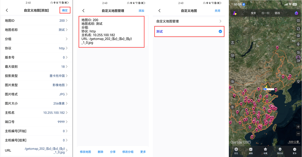 點擊[自定義地圖]菜單,選擇剛添加的圖層,即可顯示調取的地圖。第一次加載可能會比較慢,等待1分鐘。