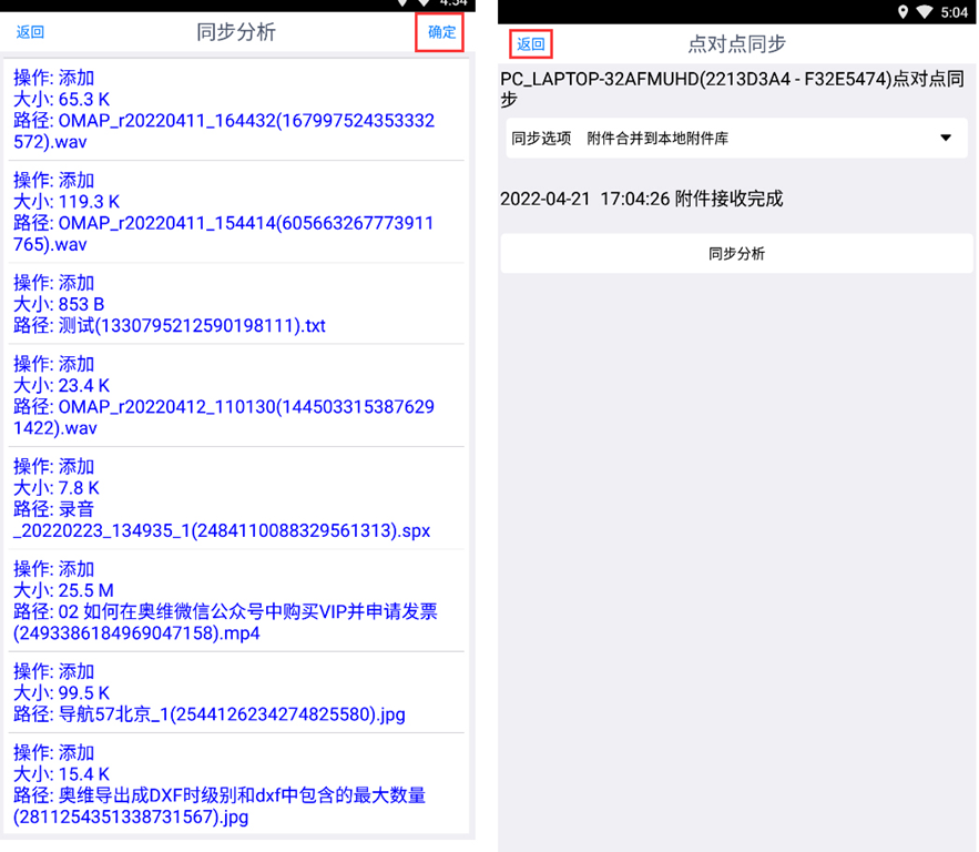 手機(jī)端點(diǎn)擊【確定】,完成后,您可以點(diǎn)擊【返回】,退出點(diǎn)對(duì)點(diǎn)同步。