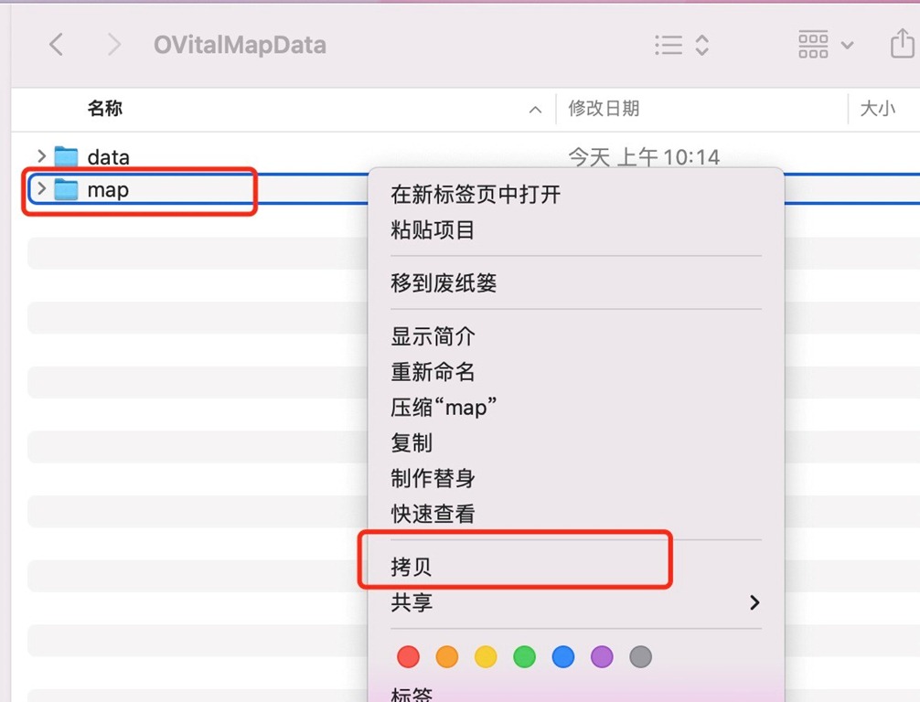③在OvitalMapData文件夾下,我們將map文件夾拷貝到桌面。