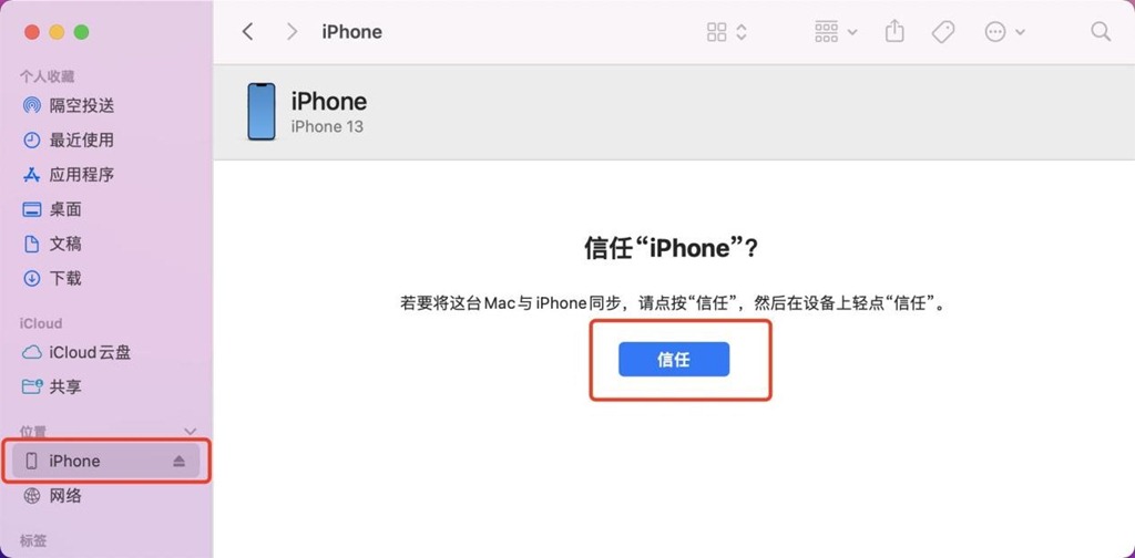 ④點擊【前往】→【個人】找到連接的手機,點擊后選擇信任,在手機上也選擇信任。